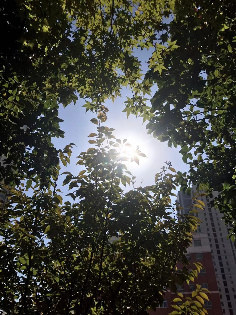 每年的这个时候,一抬头,总能看到绿油油茂密的树叶和刺眼的大太阳,这场景真的太美了。 2025-10-17 -