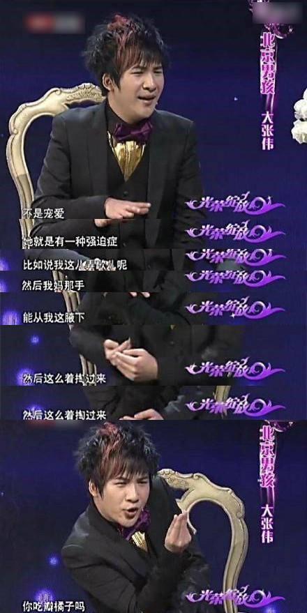 这几天因为讲段子火的不止他一个明星,还有一个是一直是段子手的歌手大张伟。因为在一个北京台的采访节目里形象总结了北京人的生活习惯,搞得主持人在现场乐不可支,笑得花枝乱颤。加上大张伟最近在《跟着贝尔去冒险》和《拜托了,冰箱》里一本正经胡说八道的贫嘴功力,“南有薛之谦,北有大张伟”就诞生了。