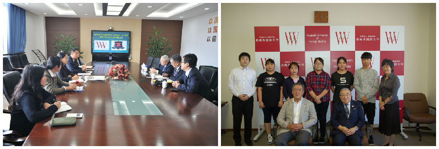 20161012日上午,日本长崎外国语大学栗屋旷理事长和石川昭仁校长对我校进行了友好访问。这是自2013年两校缔结姐妹学校以来长崎外大最高级别的拜会。理事长和校长不顾高龄,远涉千里来到我校,石川校长更亲自进入到一、二年的日语班级和商务日语专业学生围绕东京奥运会、外语学习等话题进行了亲切的交流。