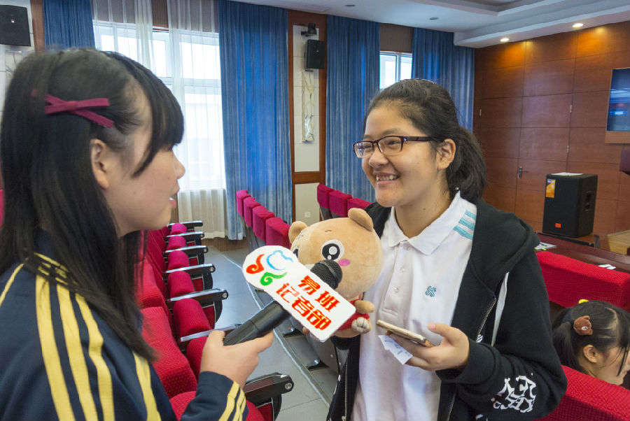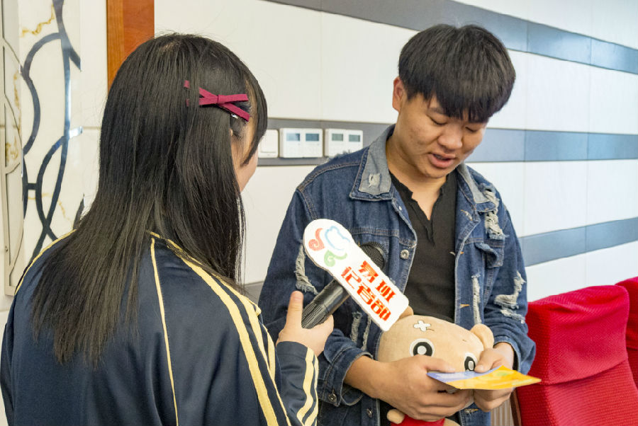 图书馆门口,采访小队采访到了2位完成了“方言活动”的新生,在采访过程中新生们纷纷表示这环节的活动最有趣,希望在以后的大型活动中能够再次参与。
