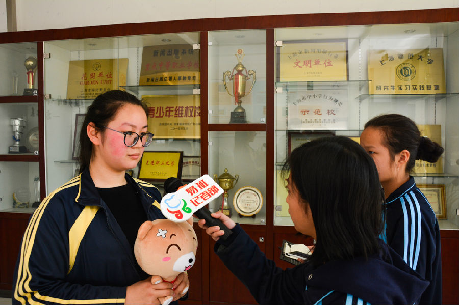 最后我们来到图书馆采访了杨冰莹同学,当我们问到她进入决赛的心情以及培训的收获时,她向我们娓娓道来:“自己能够进入决赛挺高兴的,但更多的是期待。进入决赛,自己就会有机会和来自全上海市参加时政比赛的优秀同学进行更深一步的交流和探讨。对于这次培训的收获主要有两个方面:第一,就自身而言,自己对时政也不是那么的有兴趣,就是因为现在有这样的一个比赛,自己会拿出手机天天看今天有哪些新闻。然后现在也了解到了时政看上去好像是虚无缥缈的,但其实跟我们每一个人都是息息相关的,所以我觉得非常重要。第二,我们的指导老师对我们特别好,他给我们划了很多重点,相比于老师,我觉得更像是朋友,所以我们能取得优秀的成绩离不开冀老师的谆谆教导!”
