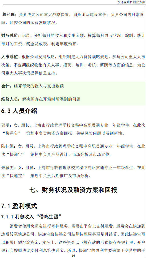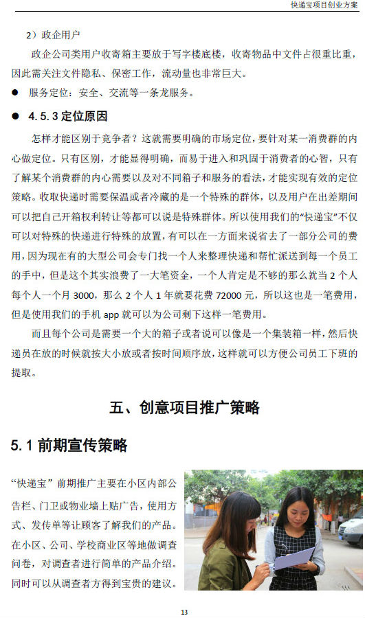 论坛>交大卫校>易班中职学校>《“快递宝”的创业计划》