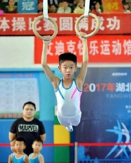 不曾想,一转眼小萌娃已经7岁了,了不得的是,他竟然真的子承父业练起了体操,首次亮相湖北省“杨威杯”体操冠军赛,7岁的他参加了6岁组的角逐,表现不俗,获得了第三名。