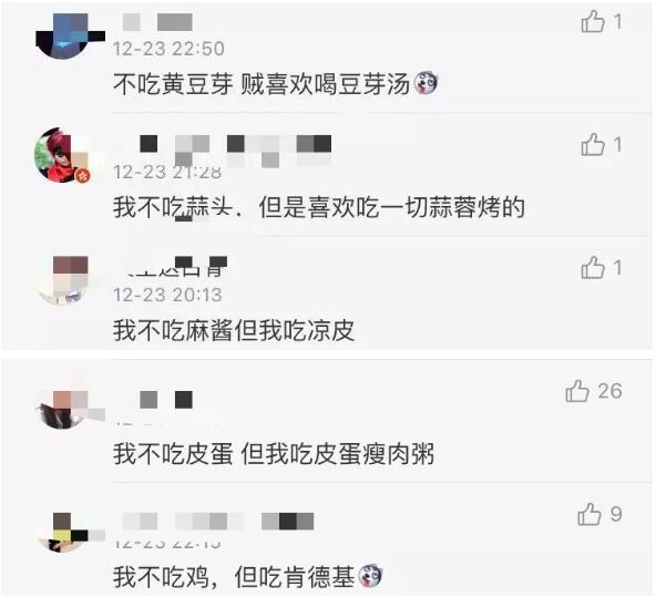 比如吃香菜,但绝对不吃香菜馅的饺子,