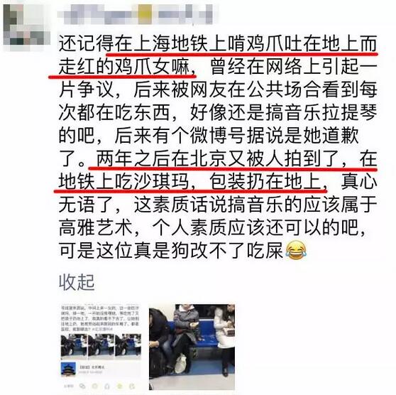 想当年,她在地铁上不仅大啃鸡爪更是面对众人的批评气势汹汹地“舌战群雄”,后来网友还发现鸡爪女在2013年就曾被网友曝光在地铁上啃鸡爪。