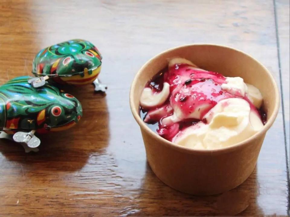 细腻绵滑入口即化牛奶味浓郁醇厚加上口感酸甜的蓝莓酱小编恨不得啊呜一口吞掉
