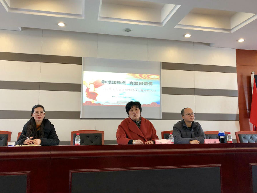 本次大会由德育教研室巴利娜老师主持我校在15届上海市时政大赛中,取得优异成绩。获得了2个优胜奖,优秀指导老师、优秀组织者的称号。为了在16届实战大赛中也取得优秀的成绩。徳育教研室在寒假期间,为我们举行了时政冬令营活动,863名在校生进行在线学习。在完成学习的基础上翁校长代表校领导对此次参加时政比赛的15位同学带来了问候和要求。,举行初赛,选出了25名同学。下一个阶段,在3月1日进行了复赛。最终选出15名同学代表学校参加上海市比赛。希望这15名同学继续加油。