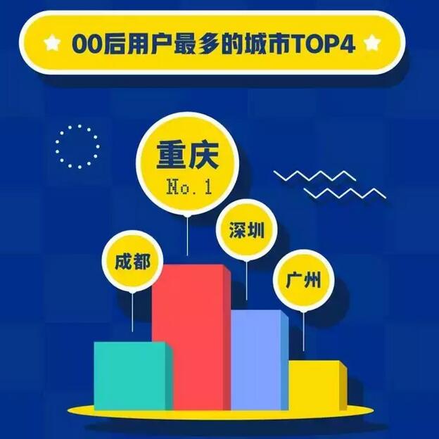 从被调查用户所处地域和使用软件的时间来看,重庆已经超越深圳、成都和广州,成为QQ平台上00后用户最多的城市。