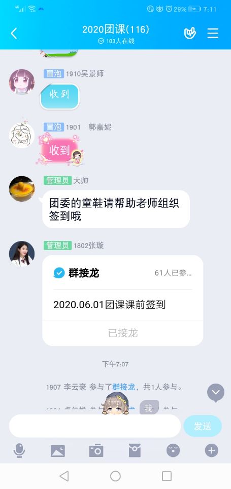 唱响青春的号角,扬起新时代的风帆,上海新闻出版职业技术学校为落实团课学习质量,加强准团员们的道德修养,团委组织在线上开展了2019学年第二学期团课学习。6月1日至6月4日——"唱响新时代青春之歌"主题团课由辛梦实老师担任指导。