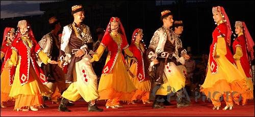 维吾尔族不仅能歌善舞,而且在服饰上也花样较多的。维吾尔族属于伊斯兰教,由于伊斯兰教禁忌偶像崇拜,他们服饰的传承意义是:禁忌在服饰、饰物和建筑物上描绘人物、动物的造型,聪慧爱美的维吾尔人对美的追求转向对以自然物象为内容的图案艺术创作。也因为维吾尔族曾信奉过的萨满教、祆教等对大自然的崇拜等因素的综合作用,维吾尔族把以大自然物象为内容的图案艺术创作发挥到极致。他们以各种花卉纹样, 以植物的枝、叶、蔓、果实图案纹样,以现实生活中的壶、盆、瓶、炉、坛、琴等物的图案为装饰纹样,并以直线、曲线、弧线构成正方形、长方形、圆形、三角形、菱形、星形、新月形、锯齿形等各种各样的规则或不规则的几何图形, 尽情装点维吾尔族服饰。维吾尔族妇女的裙裤、坎肩, 维吾尔族男子的袷袢、腰巾等, 无不展示着独具伊斯兰浓郁风格的维吾尔族服饰之美。