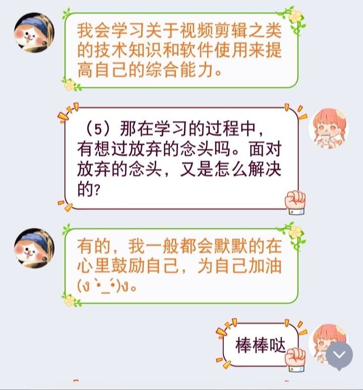 1904班的田璐瑶也向小记者分享了她丰富多彩的假期生活,她觉得这次假期是一个提升自我的转折点,成绩反映出了知识点没有熟练地掌握和运用,所以她计划在假期里,查漏补缺,复习旧知。同时她努力学习视频剪辑,增加自己的个人技能,提高综合能力,让这个假期变得更加有意义。