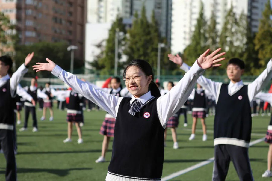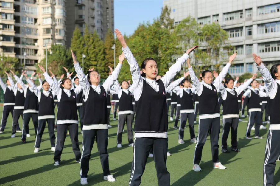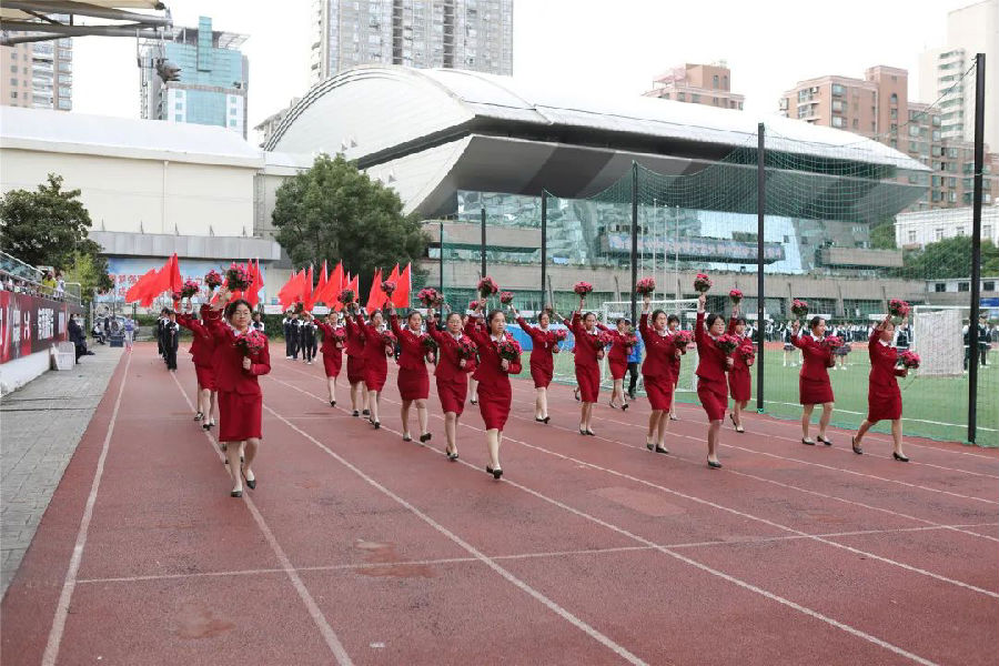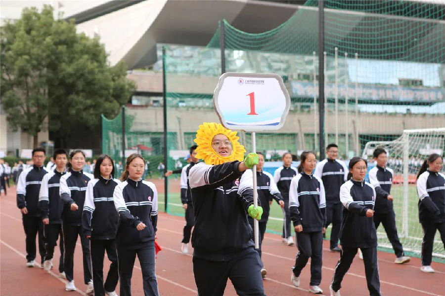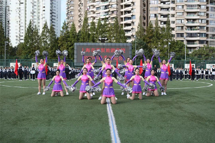 热身表演开始。由顾月仙老师带领的Top Girls社团为大家带来了精彩的啦啦操舞蹈,这个社团每年都会参加各级各类比赛,可谓战果累累;空手道表演也是每年运动会上的保留节目,该社团在居剑锋老师的带领下一直人丁兴旺,参加比赛更是战果辉煌;“和乐”是商贸旅游学校的校训,为此,王建国、戴杰老师编排了校园律动操《你笑起来真好看》,来自浦东校区20级的60位同学个个笑容洋溢,激情四射,同学们真挚友好灿烂的微笑是学校的一张靓丽名片。