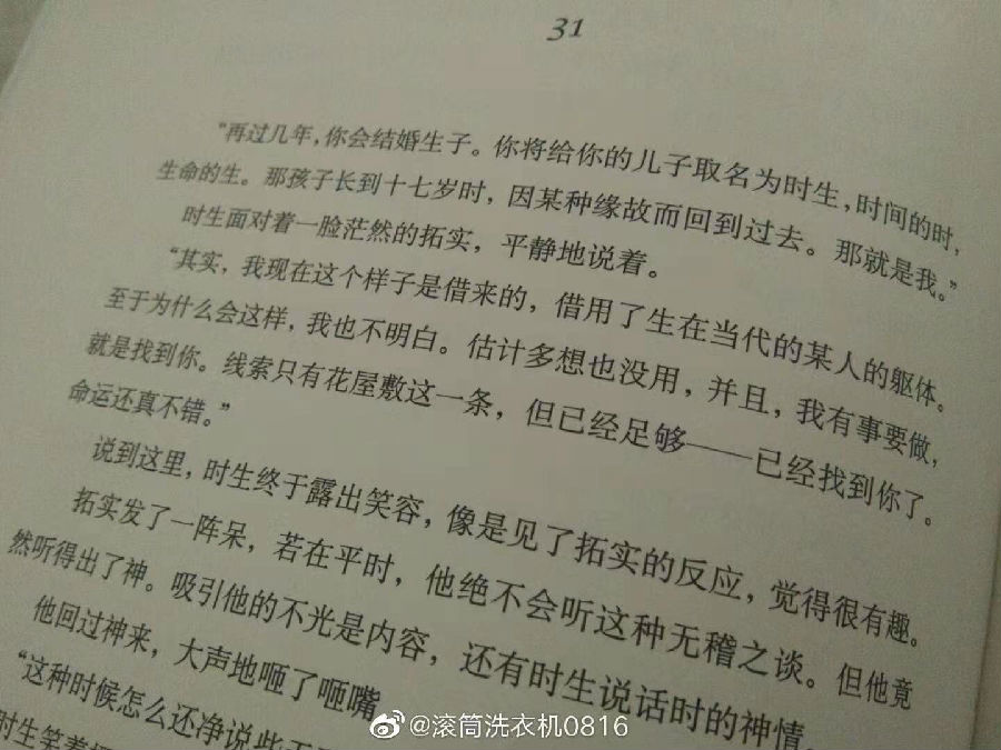 《时生》,书如其名一样精致,时间像是浩翰宇宙里穿梭的行星,不可停止、不可逆转,钟表随之转动,我们随之长大、老去。如果将时间视为永恒的机器,那便是每一个人的一生,时间若是作为时刻解释,每一个时刻都有可能是某个人的重大转折点,或一举成名。