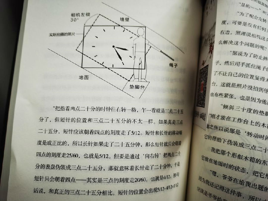 小说被分为七个章节,第一章:跟踪狂。通过食物的进餐时间和顺序来制造认知陷阱,利用人们对于习惯的的盲从性来判断问题,最终造成了被害者去世时刻的时间差;第二章:凶器。被害者在遇害时时,凶器却出现在了另外一个地方,子弹的运行轨迹在较近距离射击中的作用被忽视,从而导致错误的认定,但高明之处在于,那两颗子弹就真的是从一把手枪中发射出来的吗?第三章:被害者。杀人者和被杀者都相继离世,尤其是杀人者自己承认了,但从时间节点上推算,“杀人过程”完全不能成立,“杀人者”是清白的。在时间和距离的结合上,本篇运用的相当高明,但其实更令人震惊的是杀人者的特殊性;第四章:消失。钢琴老师的过世究竟跟她的妹妹有没有关系?妹妹昏昏沉沉的睡了十八个小时,还有做了那么多匪夷所思的梦究竟意味着什么?在某时、某地,自己的身体究竟在何方呢?第五章:爷爷。这是一篇关于怀念爷爷的趣味故事,充满了温馨和快乐;第六章:山庄。度假山庄独特的构造,主屋与钟楼的十多米的距离,在下雪以后,脚印和鞋号的大小成了决定胜负的关键。一次小小的聚会,两人没有预期的会面,充满了浓浓的恶意;第七章:下载。利用限定发售歌曲下载的日期进行设计的手法,利用朋友的毫无防备,绝佳的手法。