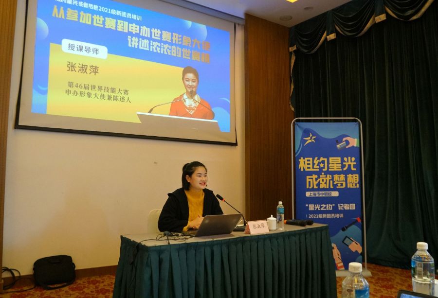 一双印刷之手推动中国时间的到来——张淑萍作为“星光之约”记者团社会实践培训的特邀嘉宾于2021年11月27日来到东方绿舟青少年活动中心。干净利落的齐肩短发、和蔼可亲的大方笑容,面前是58位“星光之约”记者团学生记者、指导老师及领导,所有人都等待着她的故事,听她讲述是如何用一双印刷之手印出往昔的六年奋斗画卷。