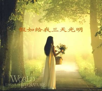 ; ; ; ; ; ;20世纪,一个独特的生命以勇敢的方式震撼了世界,海伦·凯勒,一个又聋又盲的人,一个生活在黑暗中却又给人类带来光明的`女性。她写出的《假如给我三天光明》这本书影响了世上的千万人。