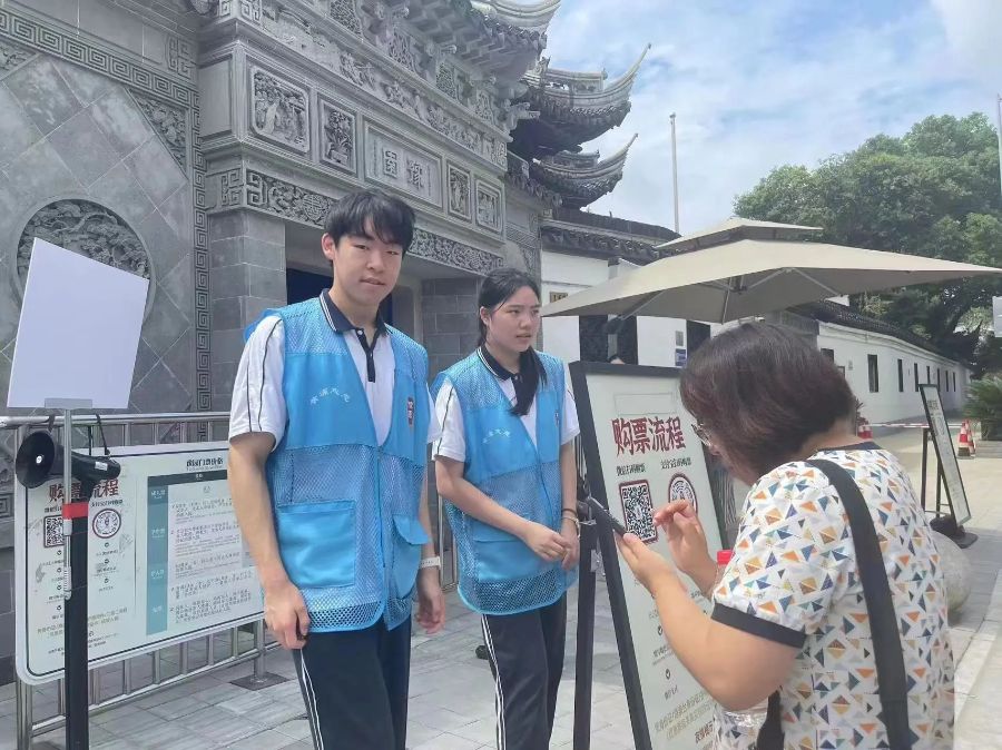 豫园,是一座著名的江南古典园林,位于上海市老城厢的东北部,是国家4A级旅游景区,也是全国重点文物保护单位。豫园所在的老城厢是上海之根,善文化是老城厢的源头活水,滋养着一代又一代上海人的灵魂。为积极贯彻落实习近平总书记关于青年工作的重要思想,深入学习宣传贯彻党的二十大精神,上海市商贸旅游学校22旅管2班的“鸿鹄”志愿者小队的36名同学班主任孙天星老师的带领下利用暑期及业余时间,积极开展志愿服务,让志愿精神渗透进豫园的每一个角落。