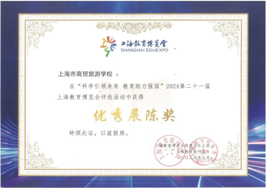 论坛>交大卫校>商贸旅游学校>我校荣获2024第二十一届上海教育博览会评选活动优