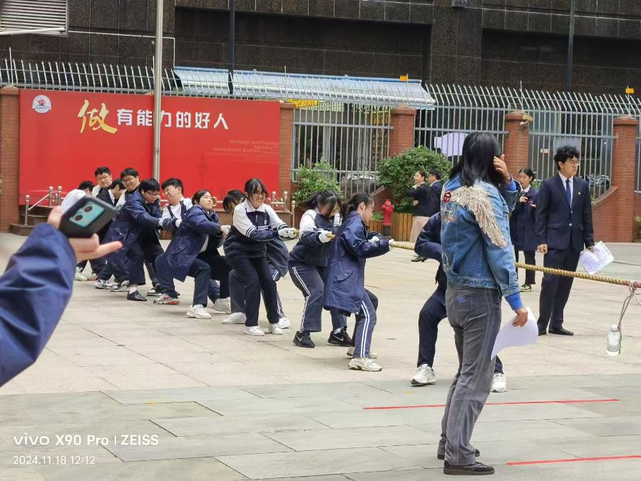 正午的操场被加油声煮沸。红绸结在拔河绳中央轻轻摇晃,二十双手同时攥紧麻绳的刹那,哨声刺破冬日的暖阳