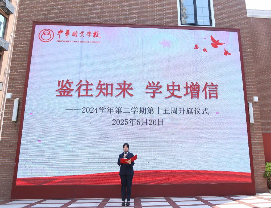 2025年5月26日,中华职业学校举行了以“鉴往知来学史增信”为主题的第15周升旗仪式。共同感悟历史的力量与文化的传承