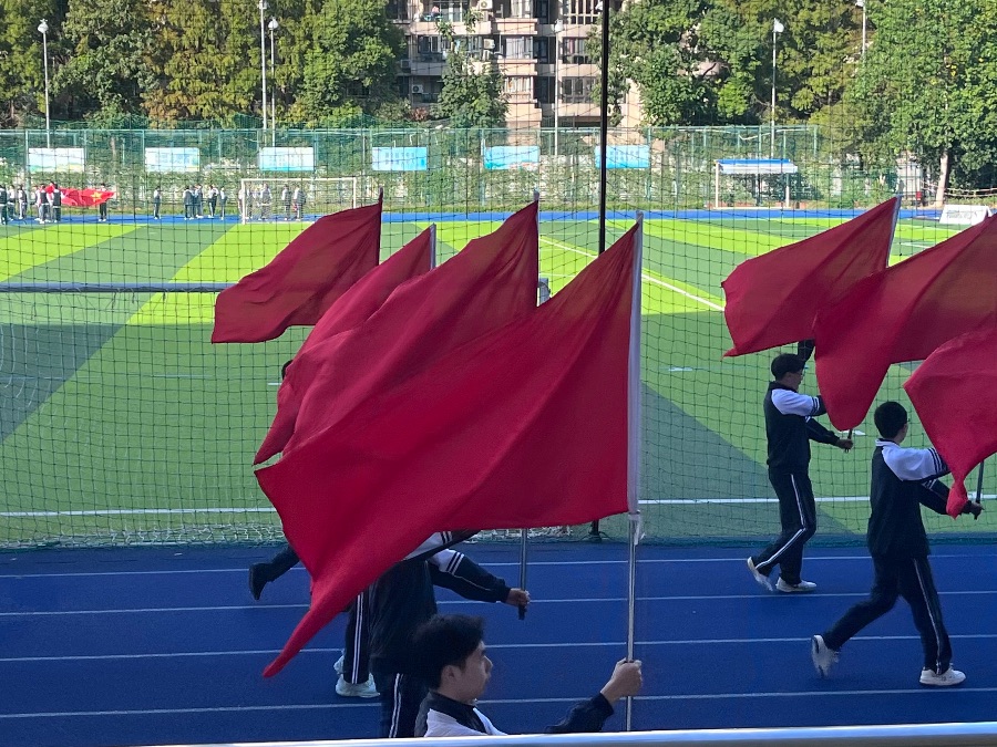 最动人心的从不是唯一的冠军。看800米跑道上那个女生,最后100米时腿已经在打颤,却把手臂摆得更用力,连刘海贴在额头上都顾不上;看接力赛掉棒的男生没慌着道歉,蹲下去抓棒的动作比谁都快,队友冲过来拍他后背喊“快冲”,比赢了还使劲;连场边最安静的同学,此刻都举着自制的纸牌跳起来,喊得嗓子发哑,手里的矿泉水瓶晃出细碎的水珠。原来“团结”从不是写在黑板报上的词,是有人冲刺时,整条跑道的人都在替他捏着劲;“坚持”也不是说教里的大道理,是累到想放弃时,听见身后有人喊自己名字,就又把步子迈了出去。大家都拿出12分精神对待这次运动会
