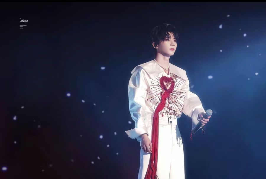 在“五周年加冠礼”大连站的舞台上,马嘉祺演唱的《我爱他》,他抛开了原曲中绝望的嘶吼,转而用一种“破碎的克制”来诠释。整首歌被处理得极具层次感:主歌部分运用了大量的气声,仿佛在耳边颤抖着诉说脆弱;随着情绪堆叠,他并没有选择高音轰炸,而是通过极具穿透力的混声,在副歌部分完成了一场隐忍却汹涌的爆发。这种“收放自如”的演绎,将原本撕心裂肺的痛感,升华为了倔强与释然。