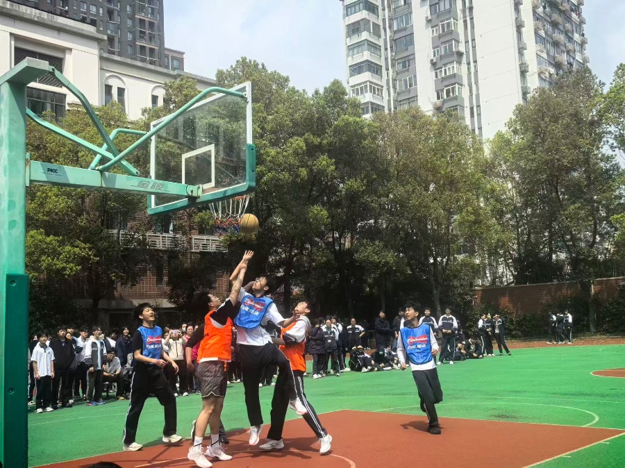 场边围满了观赛的同学,他们或踮脚张望,或屏息呐喊,目光紧紧追随着赛场中央那颗流转的篮球。阳光下的球衣被汗水浸透,少年们奔跑的身影、飞溅的汗水、此起彼伏的欢呼,都成了春日校园里最鲜活的注脚。