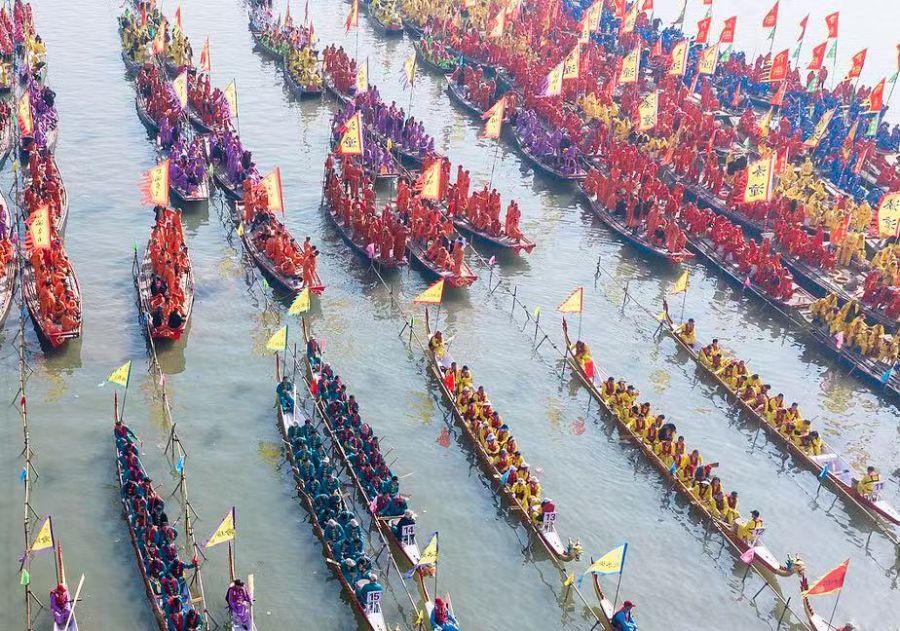 清明时节来到泰州,除了要看兴化油菜花,溱潼会船节同样不容错过。溱潼会船节,这一历史悠久的传统民俗活动,如同一幅流动的水上画卷,将古老的习俗与现代的活力完美融合。船上举行的表演——舞龙舞狮、杂技等,无不展示出民间艺术的独特魅力;龙舟竞赛、万舟齐发的壮观景象,更是让人感受到一种拼搏向上的精神,人称“水上庙会”。2026年的溱潼会船节在46日举办,如果能安排出时间,非常值得前往亲身体验这一传统与现代交织的独特盛会。