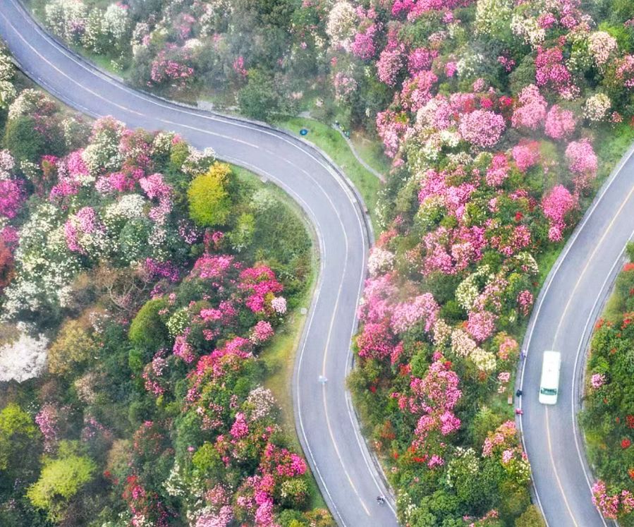 在云贵高原那连绵起伏的山岭之间自由地舒展着身姿。它们中有的高达二十余米,仿佛是山林中的巨人;有的则花团锦簇,宛如精美的盆景。从远处眺望,一片片花海随着山势的起伏不断延展,仿佛给大地披上了一层绚烂的花毯。在这里,春天并不只是温柔地悄然到来,而是以一种铺天盖地、排山倒海之势肆意绽放,展现出无比热烈的生命力量。