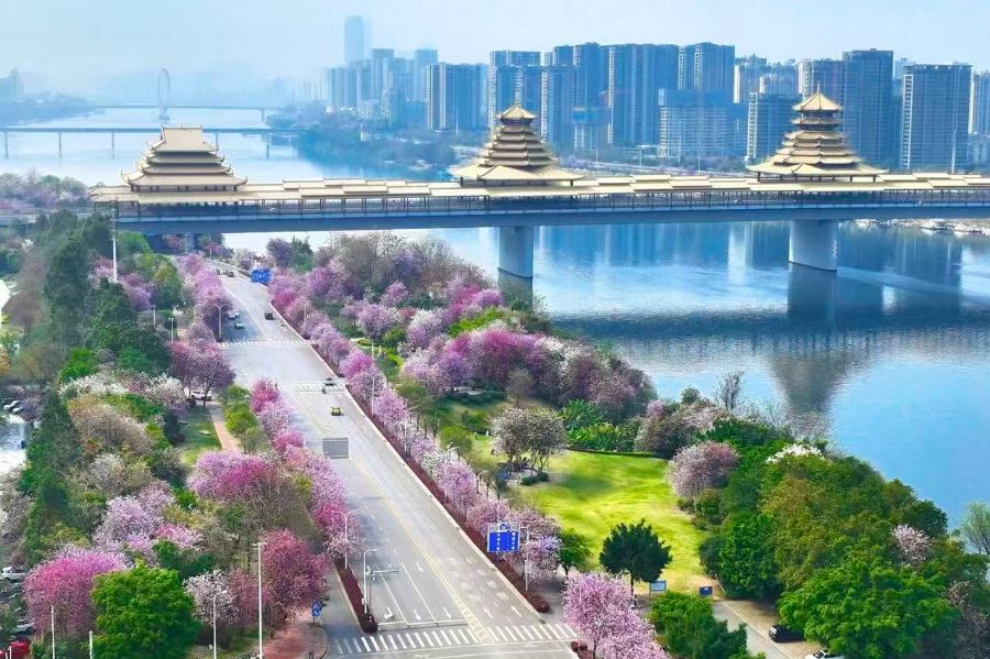 文惠路,隐匿于柳州城中区,是洋紫荆在柳州街道最初绽放的地方。随着时光的流转,洋紫荆的绚烂身影逐渐扩展至文惠路周边的弯塘路、东台路以及滨江东路,形成了一片片如梦似幻的花海。鱼峰区堪称柳州赏花之胜地,每一个角落都洋溢着独特的魅力与风情,让人流连忘返。