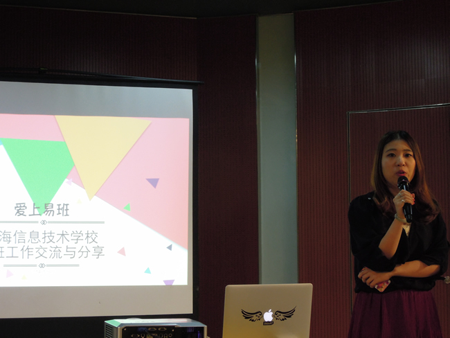活动开始,信息技术学校的易班指导老师为我们展示了他们学校易班建设的成功之处,其中线上线下的活动都十分的贯通,有效地运用了易班网站;更为重要的是,他们易班团队里的同学都踊跃为易班出谋划策,寻找不足,把易班作为一种责任,认真做好本职工作,还可以出点子并独立创作系统!