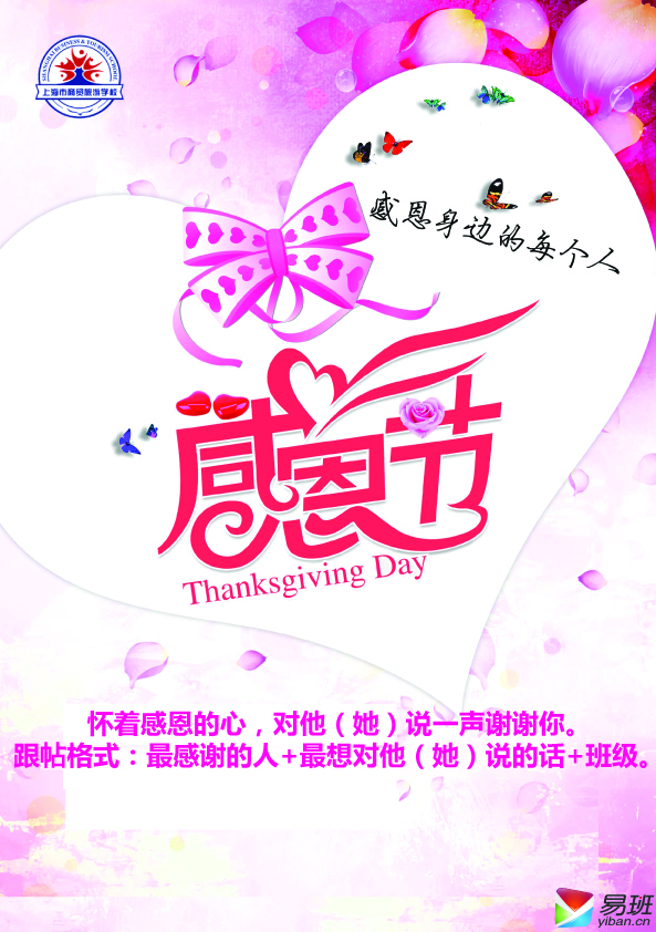 在11月27日感恩节来临之际,我们理应感谢世界上所有的事物。让我们一起学会感恩、心存感恩,感恩生活,感恩生活赐予的灿烂阳光!